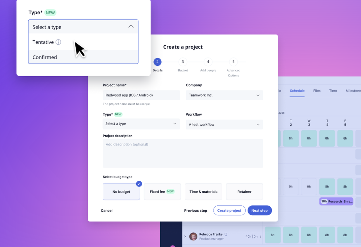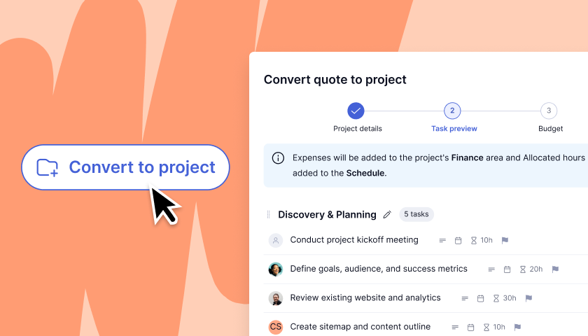 Convert quotes to projects with resource mapping, delivery timelines, and budgets.