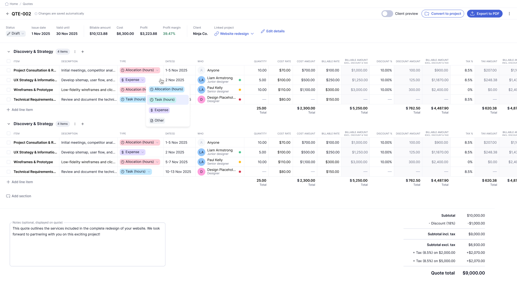 Custom Quotes, unique billable rates, and more. Start projects and budgets on the right foot.
