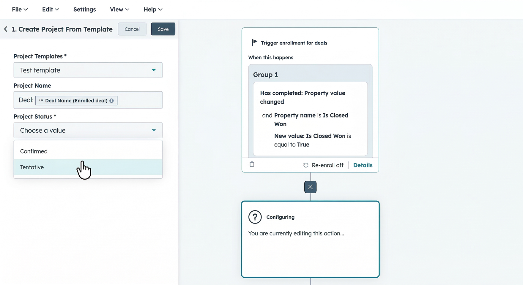 Sync with HubSpot to update project status based on deal stage. From negotiating to closed won, keep your CRM in lock step with your plans.