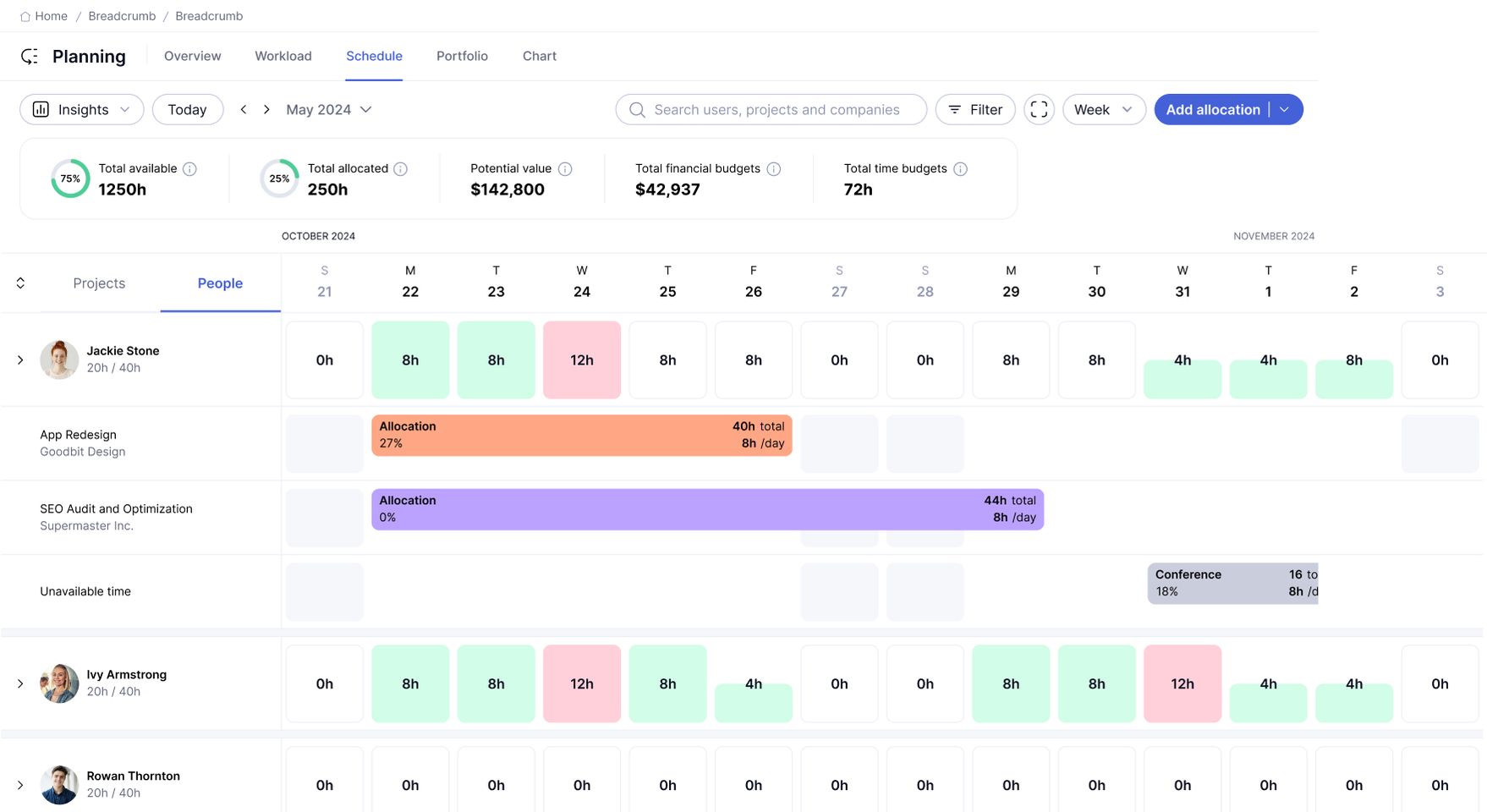 Get all the data you need in real-time to shift priorities without clashing against a project or pushing people over-capacity.